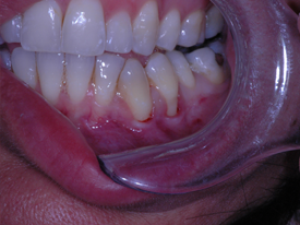 When recession of the gingiva occurs, the body loses a natural defense against both trauma and bacterial penetration. When recession is a problem gum reconstruction techniques are an option. When there is only minor recession, treatment generally consists of modification of one's home care practices. However, in more severe cases the first line of defense against bacterial penetration is lost and often leads to root sensitivity. A gingival graft is designed to solve these problems. A thin piece of tissue is taken from the roof of your mouth or an adjacent site to naturally reconstruct the lost gingiva. In many cases, Alloderm or dermis (donor tissue ) can be used as a substitute avoiding the need to harvest one's own tissue.